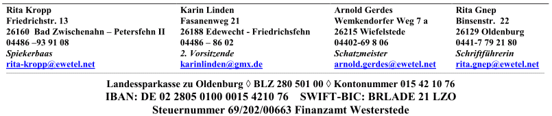 För den Späälkring: Anne Schrader, Wilhelm-Kempin-Str. 66, 26133 Oldenburg a.schrader(ät)de-spieker.de |
